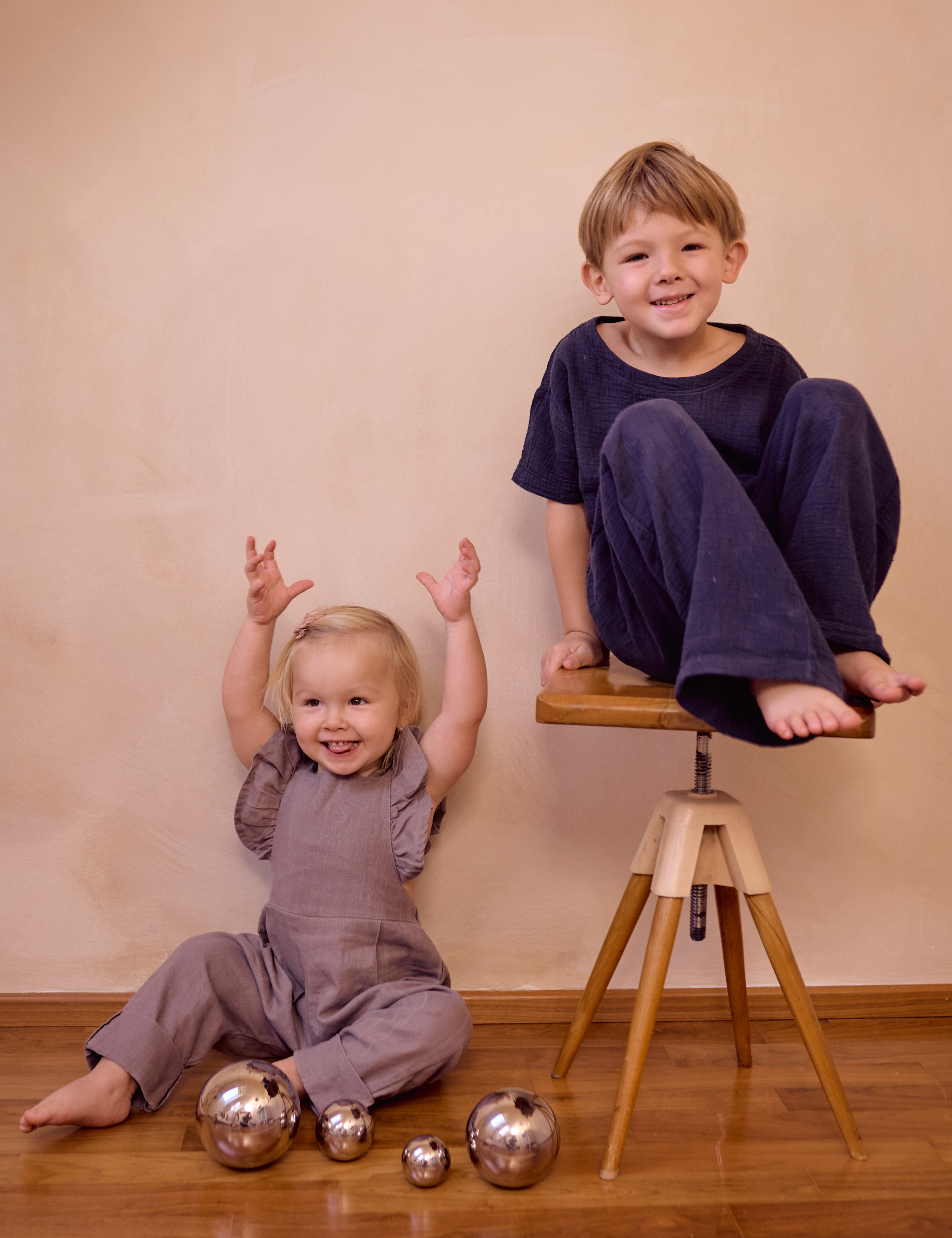 Společné kousky pro celou rodinu, vyrobené z pečlivě vybraných přírodních materiálů – bavlněného mušelínu a lnu. Navrženo s láskou na základě potřeb jedné mámy, testováno vlastní rodinou.